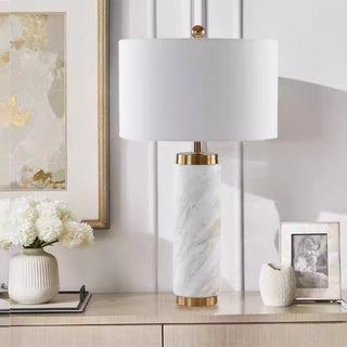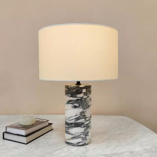 Carrara Veined Natural Marble Cylinder Table Lamp | Classic‑Contemporary Bedside Lamp