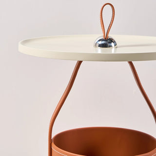 Valet Round Leather Round 2‑Tier Table with Rosewood Handle | Round Serving Cart
