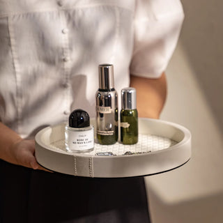 Intrecciato Leather Round Tray | Woven Valet & Catchall | Ivory or Taupe