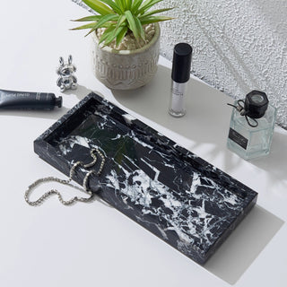Nero Marquina Marble Tray | Natural Black Marble Rectangular Valet | Modernist Desk & Dresser Tray