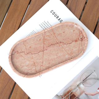 Rosa Marble Oval Tray | Polished Natural Pink Marble Valet | for Cosmetics & Jewelry