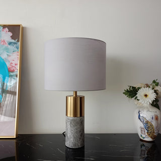Verona Savoy Gray Natural Marble Table Lamp | Brass Spine | 5‑Star Hotel Nightstand Lamp