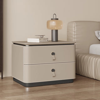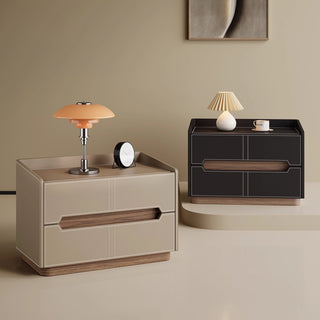 The Milan Leather Nightstand | 2-Drawer with Recessed Wood Handle | Wood Accent
