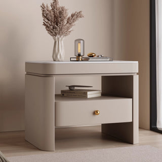 The Milan Leather Nightstand | Single-Drawer | Open Shelf with Arch Base