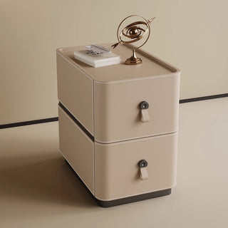 The Milan Leather Slim Nightstand | 2-Drawer with Leather Handles