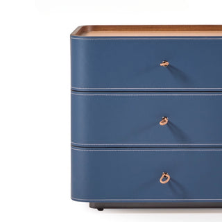 The Portofino Blue Leather Nightstand | 3-Drawer with Leather Top
