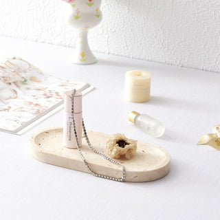 Tuscan Travertine Oval Tray | Natural Stone Catchall | Bathroom & Bedside