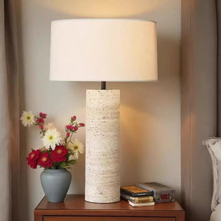 Tuscan Travertine Table Lamp | Solid Honed Natural Stone Column | Minimalist Lighting