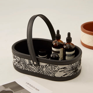 Woven & Leather Handled Caddy | Luxury‑Inspired | Oval Carry Basket Organizer
