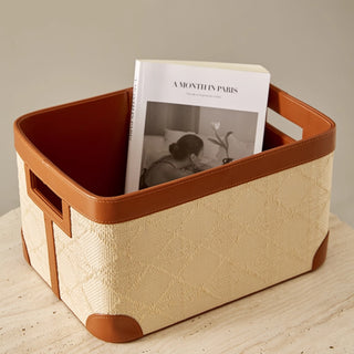 Woven & Leather Lidded Storage Box | Luxury‑Inspired | Heritage Keepsake Organizer