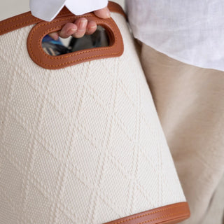 Woven & Leather Round Storage Bin | Luxury‑Inspired | Bucket Basket with Handle