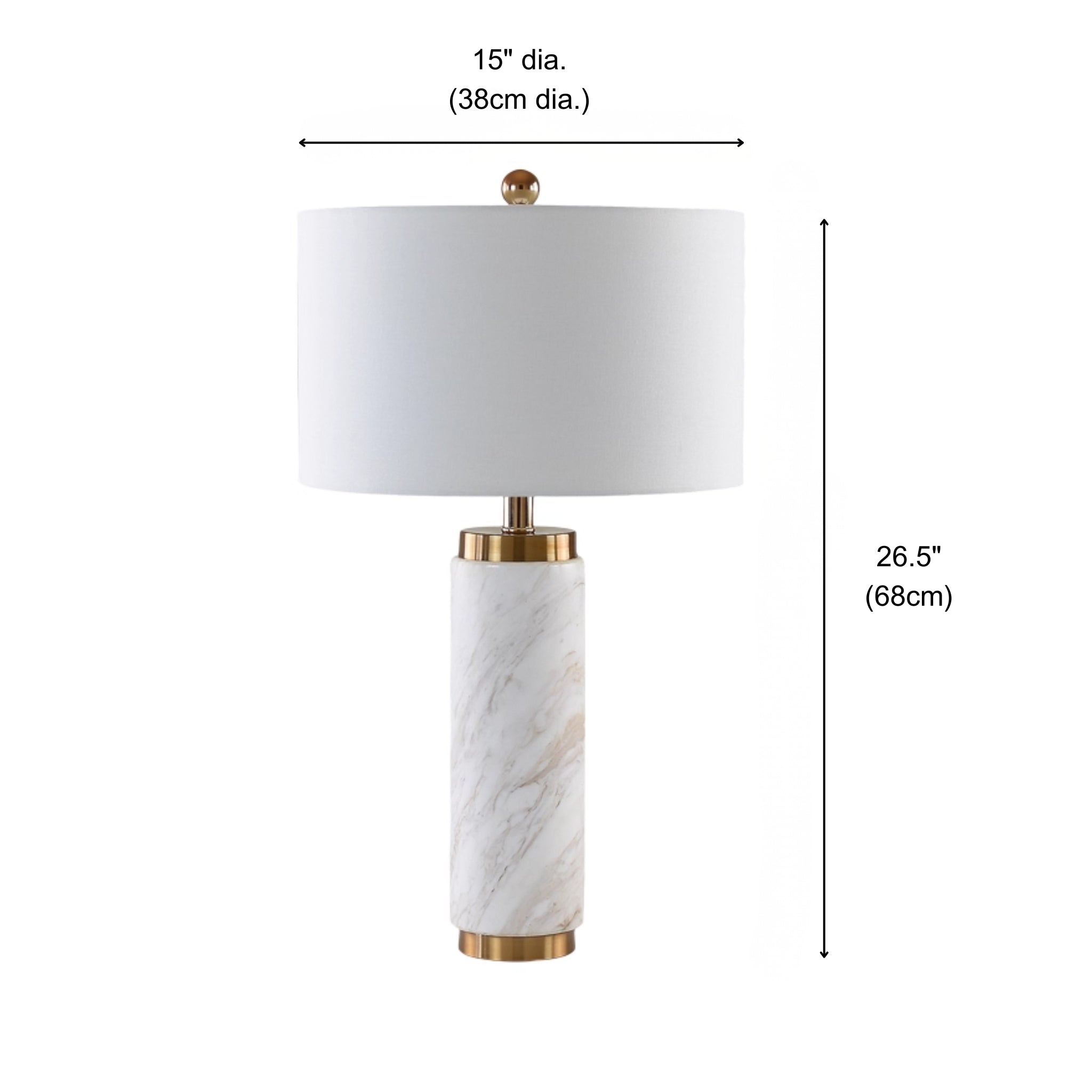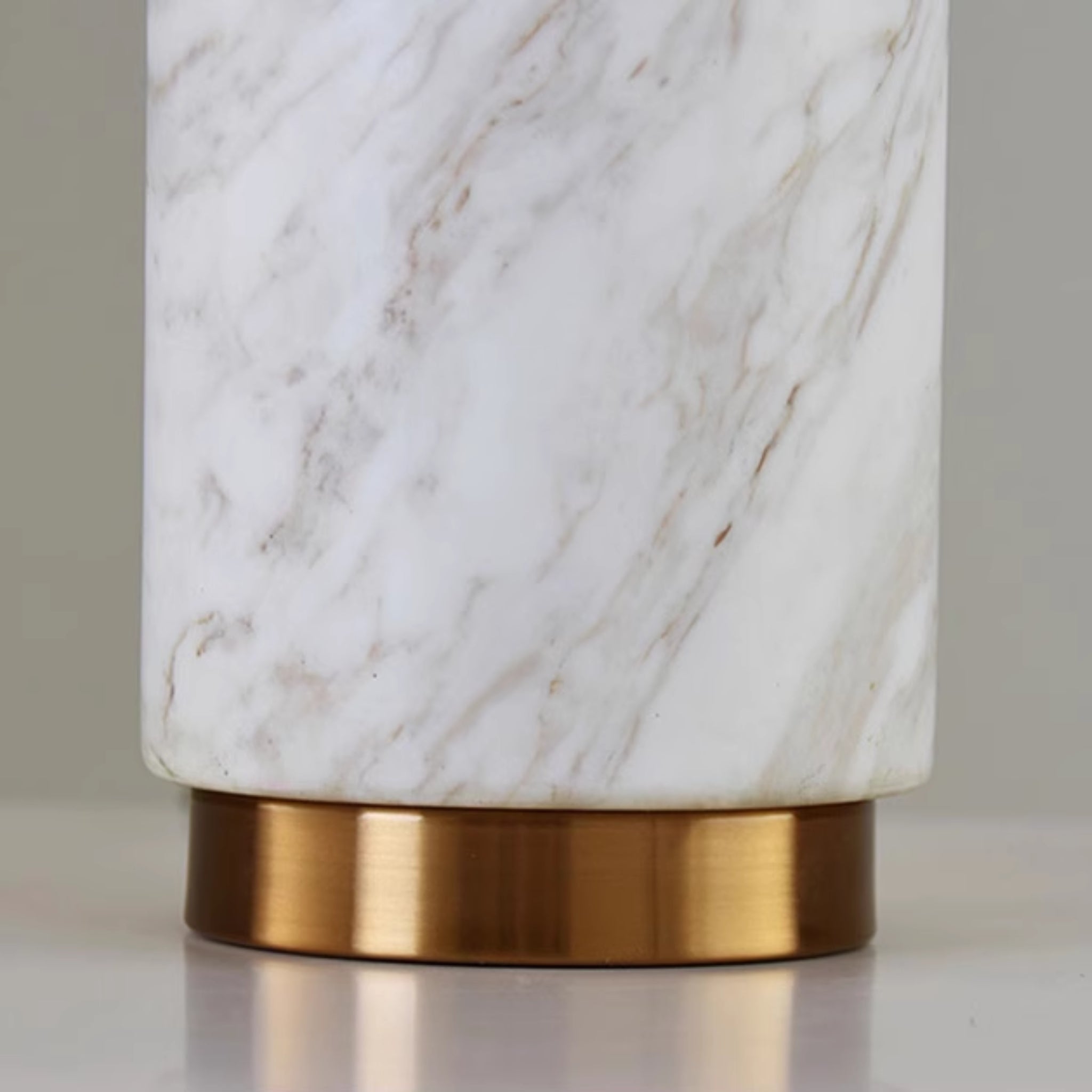 Capri Natural Marble Cylinder Table Lamp | Brass Collar | Italian Living Room & Entryway Light