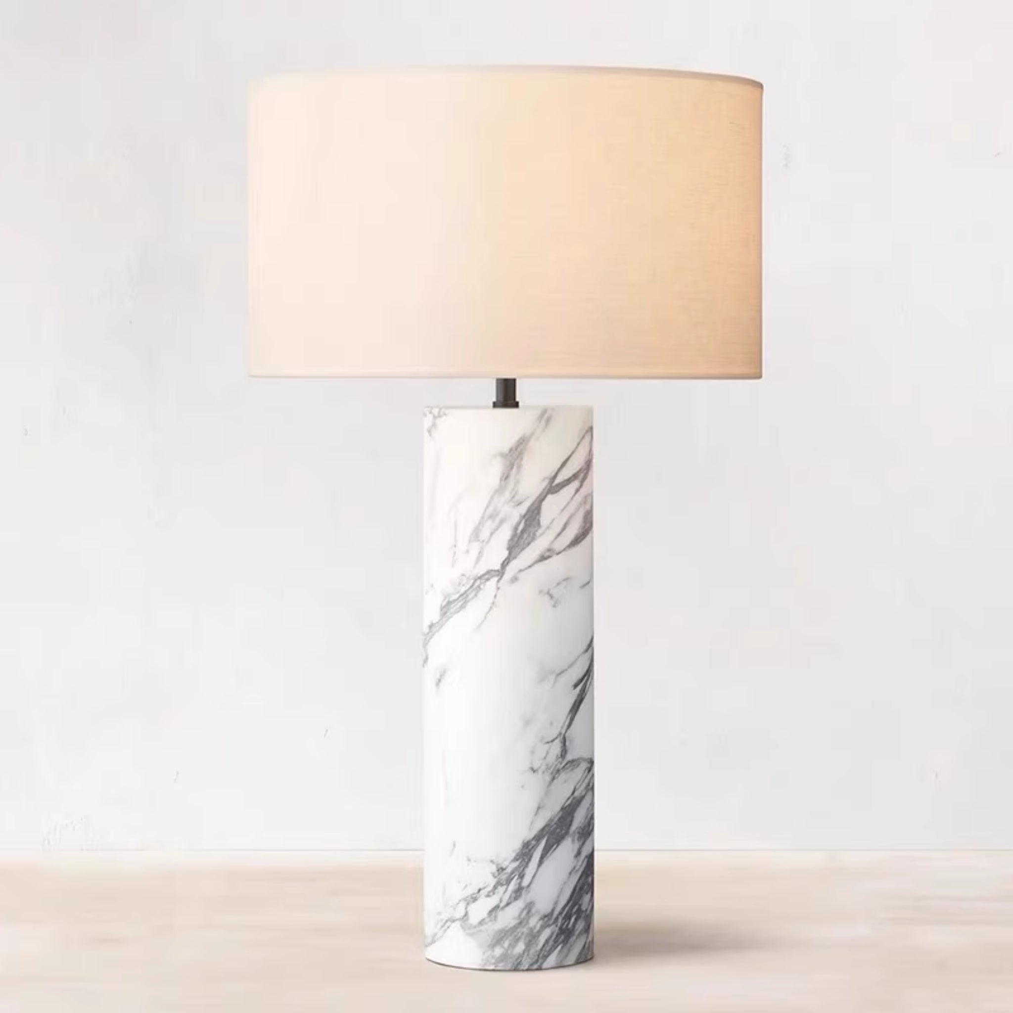 Carrara Veined Natural Marble Cylinder Table Lamp | Classic‑Contemporary Bedside Lamp