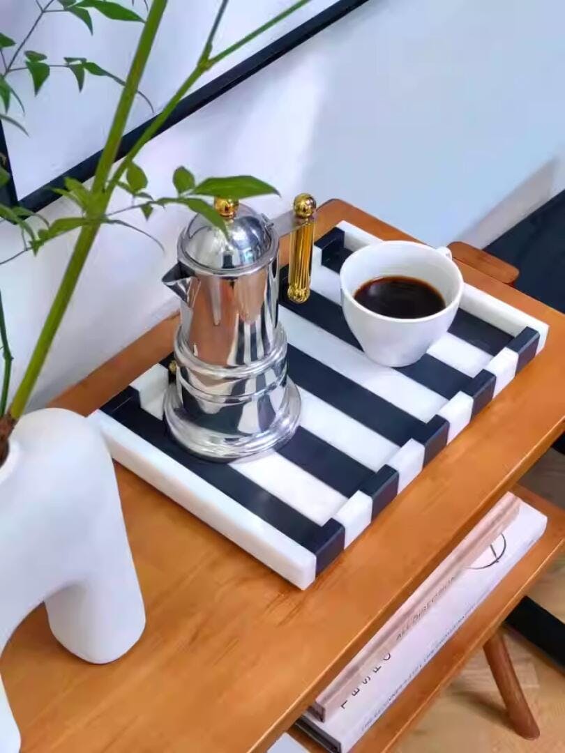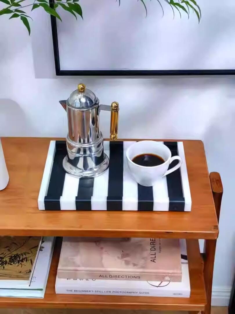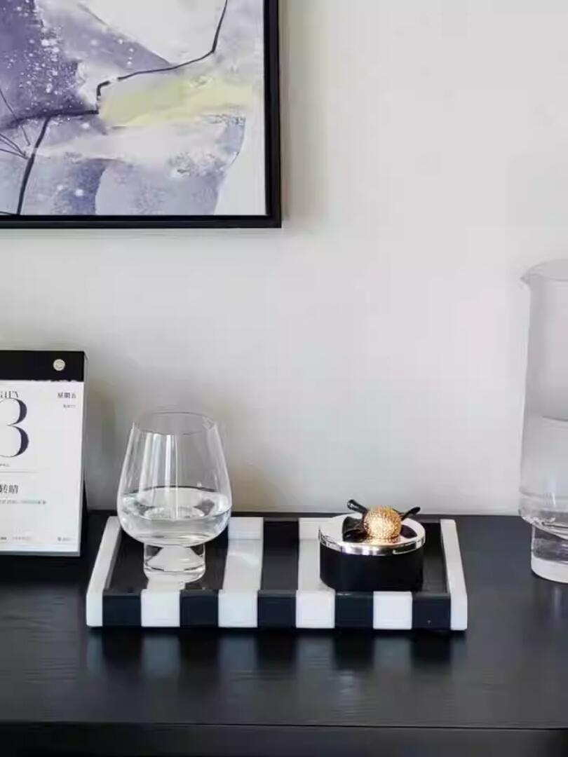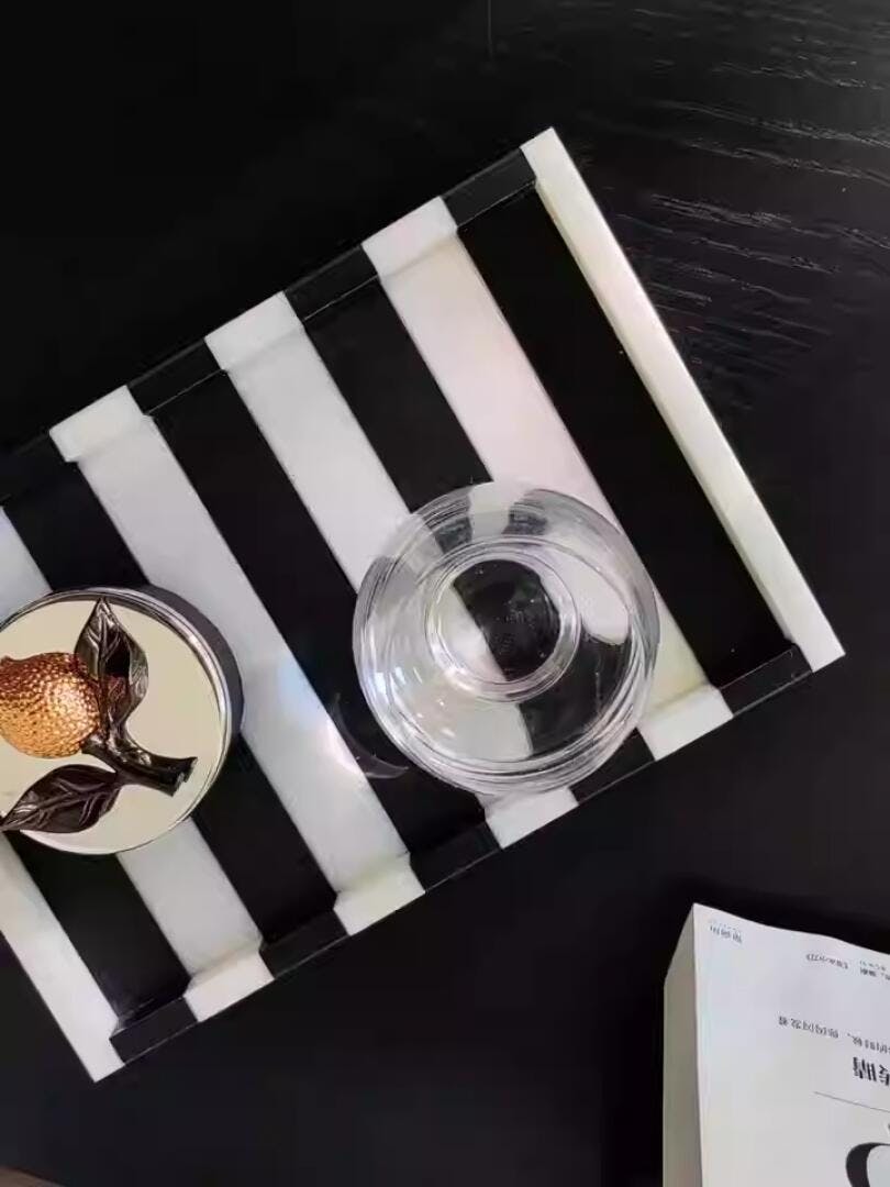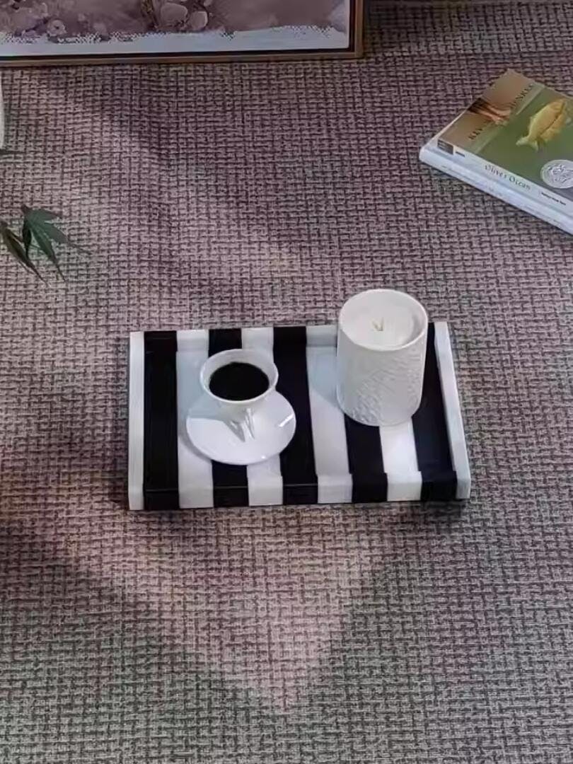 Orsay Striped Marble Tray | Black & White Stone | Parisian Valet