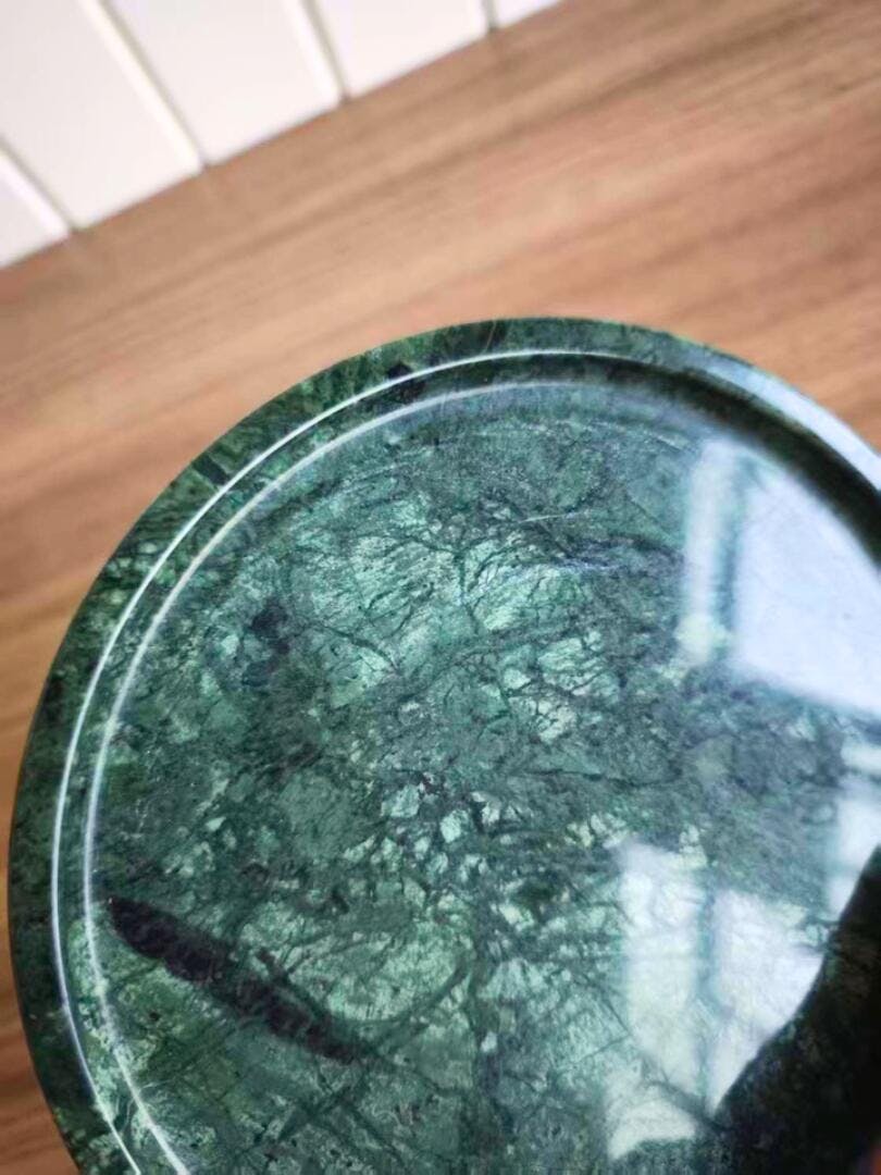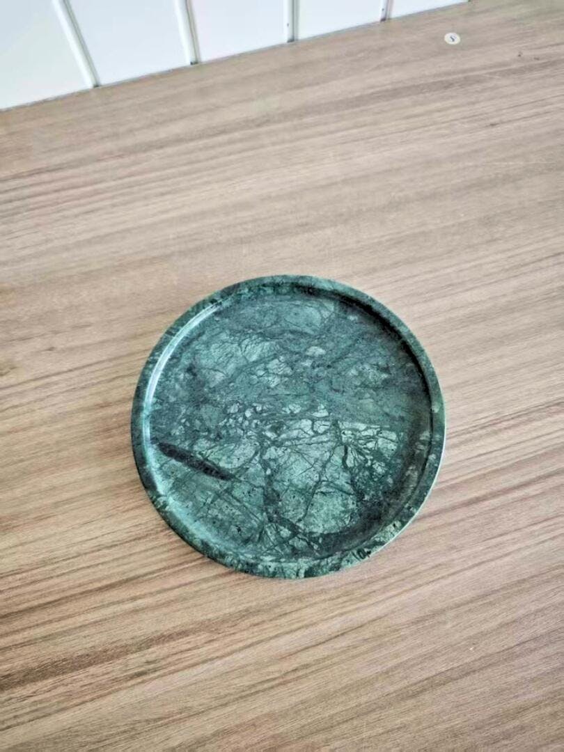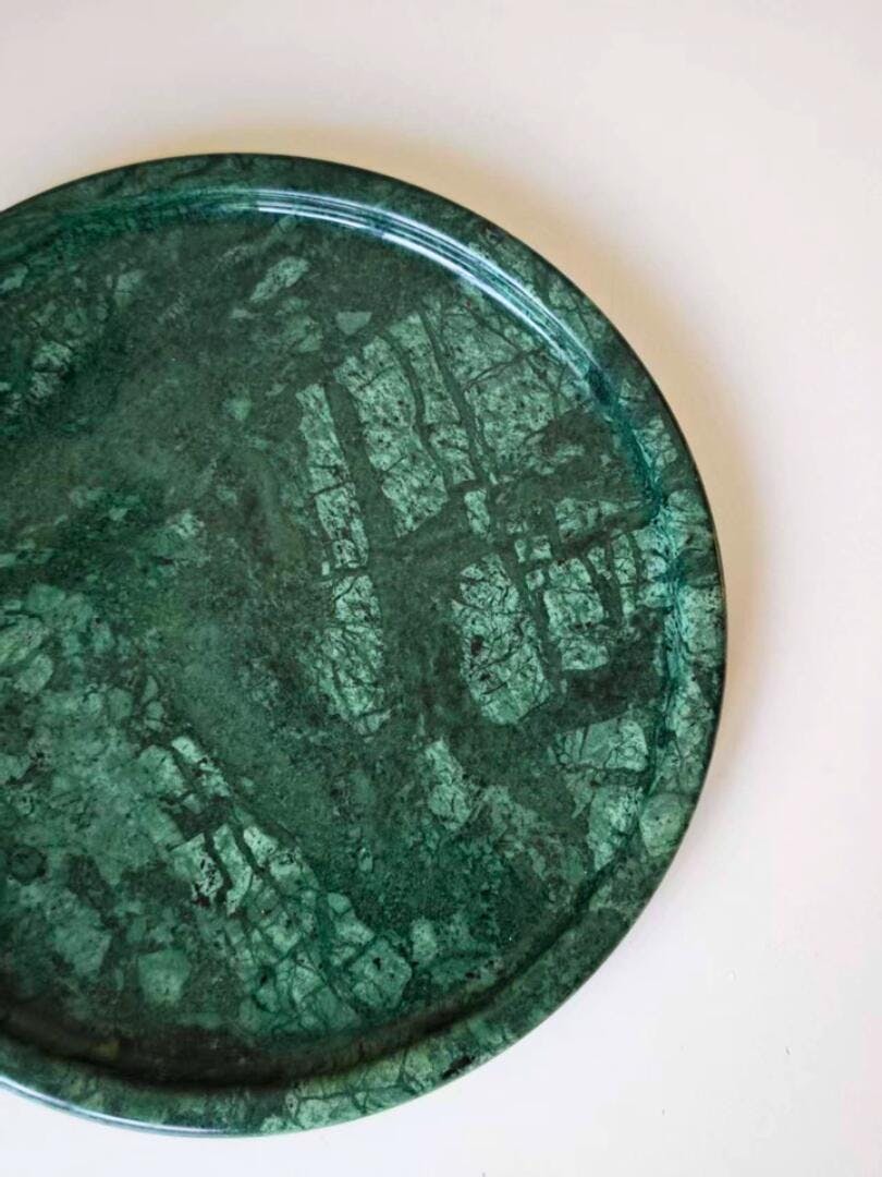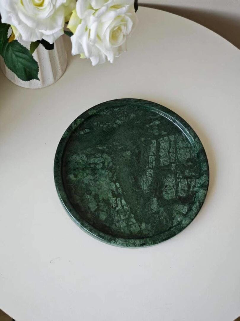 Verde Green Marble Round Tray | Polished Natural Stone Coaster | Art Deco Statement Piece