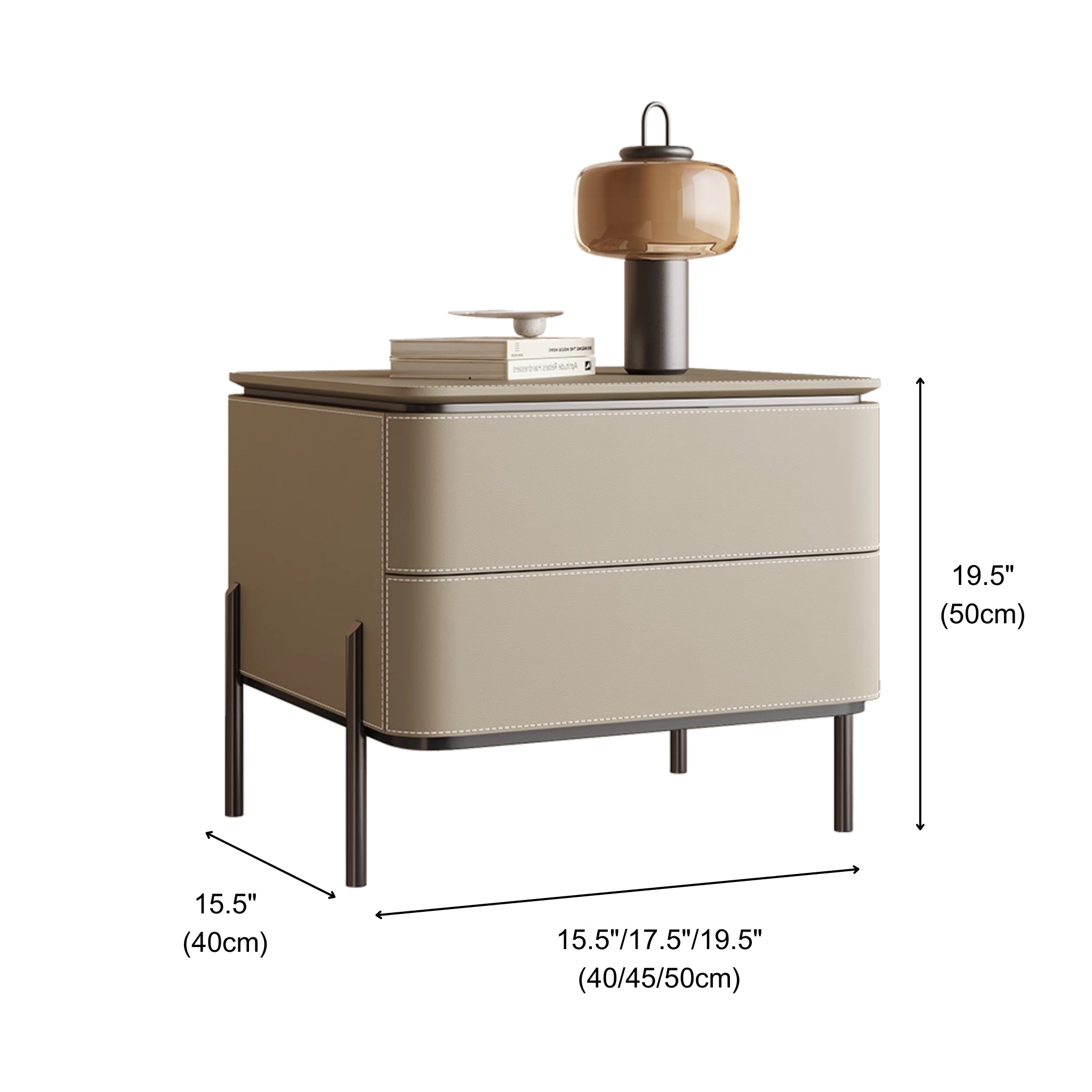 The Venice Leather Nightstand | 2-Drawer with Slim Metal Legs (Taupe)
