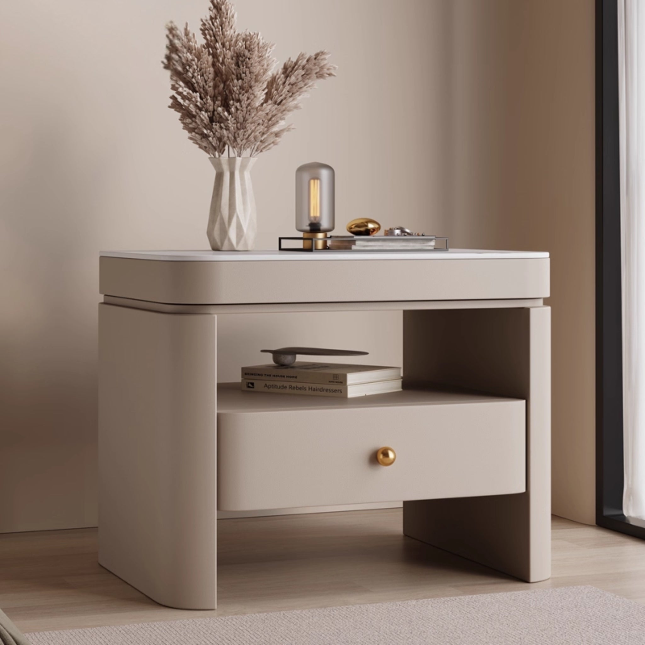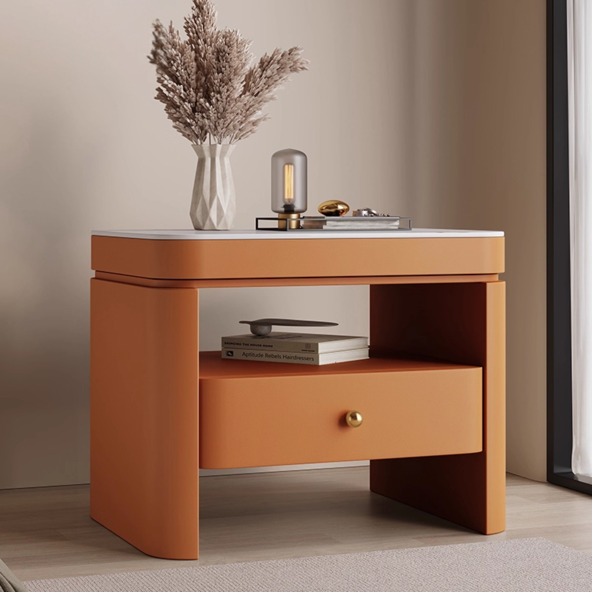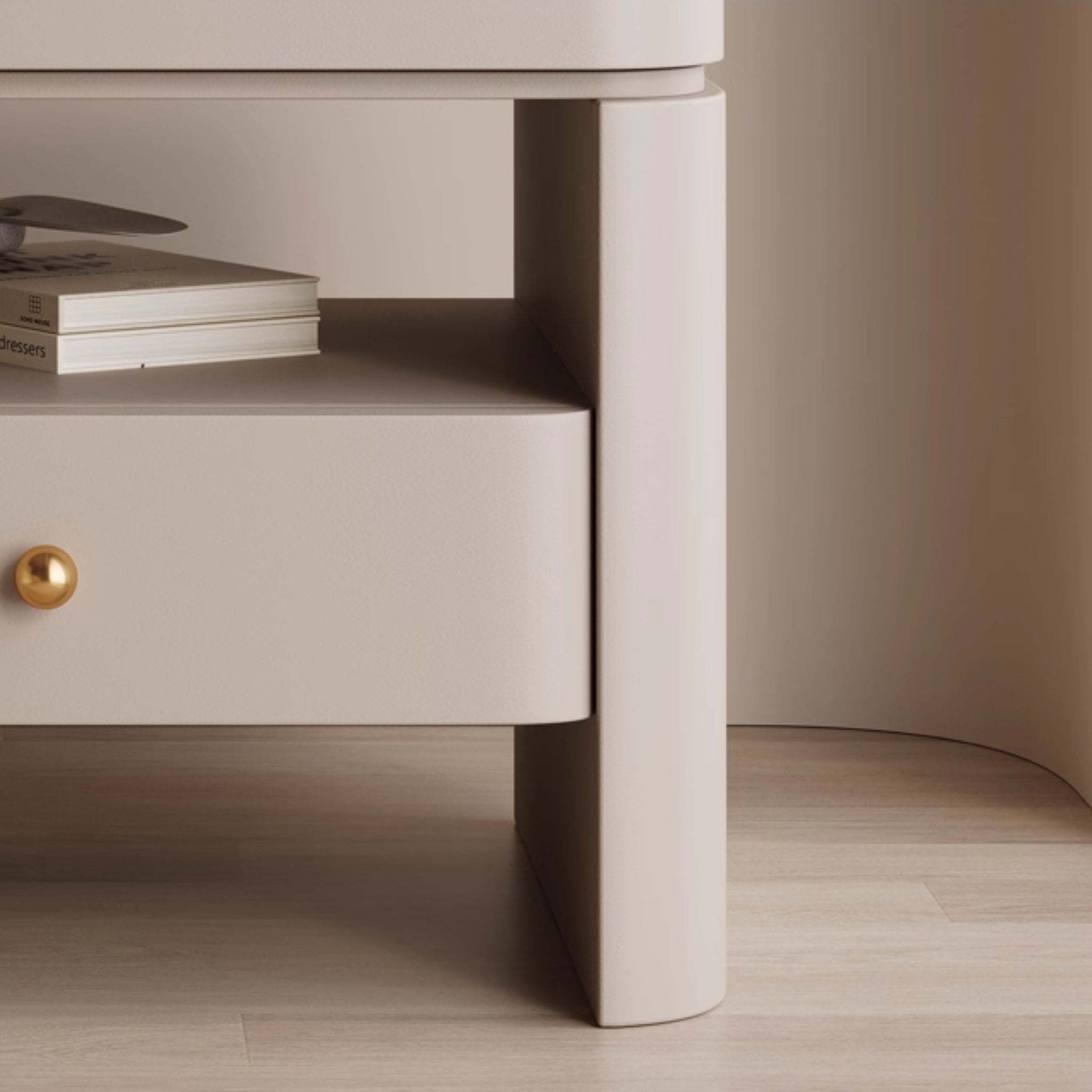 The Milan Leather Nightstand | Single-Drawer | Open Shelf with Arch Base