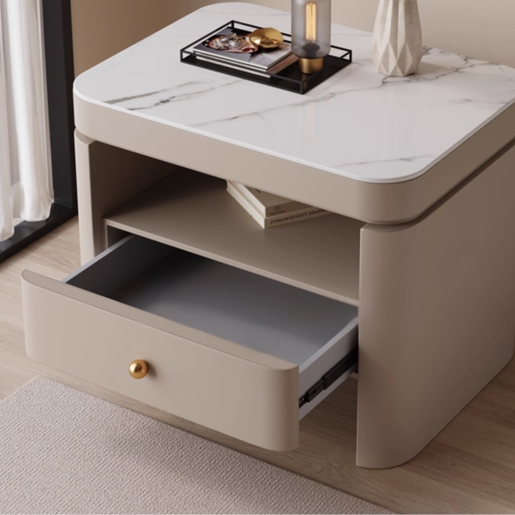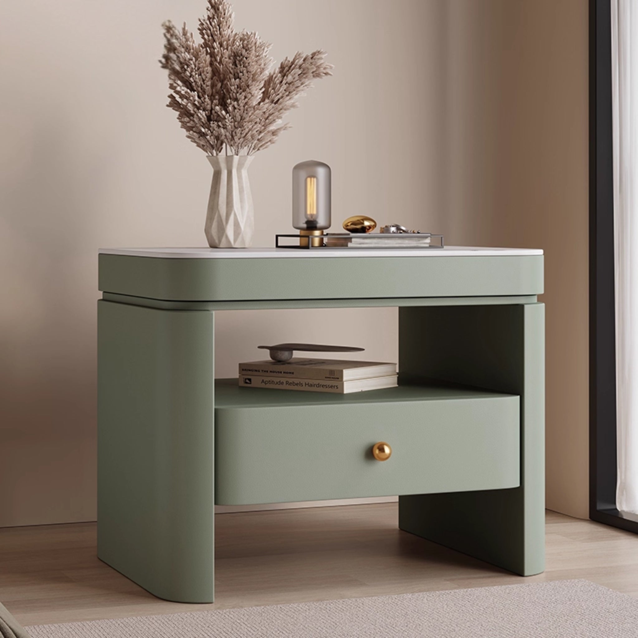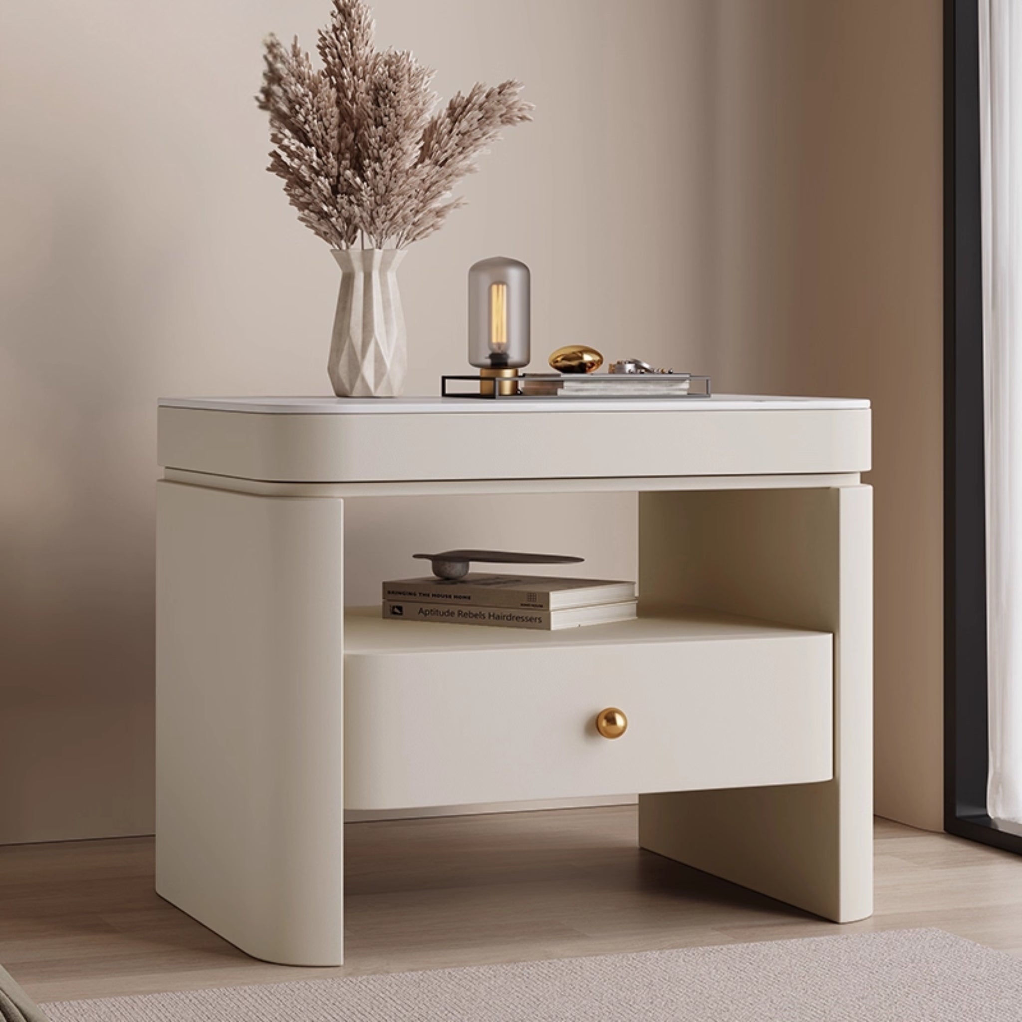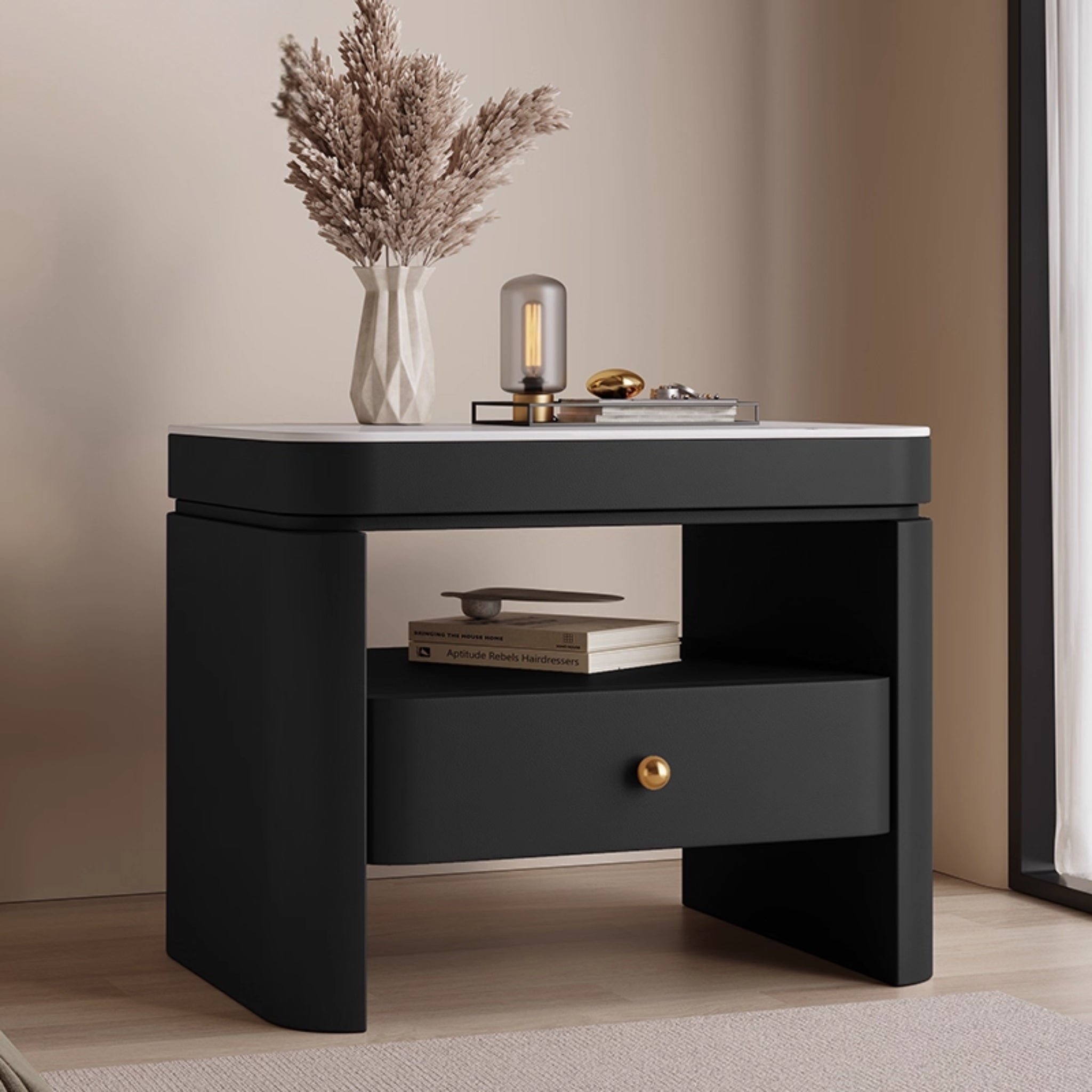The Milan Leather Nightstand | Single-Drawer | Open Shelf with Arch Base