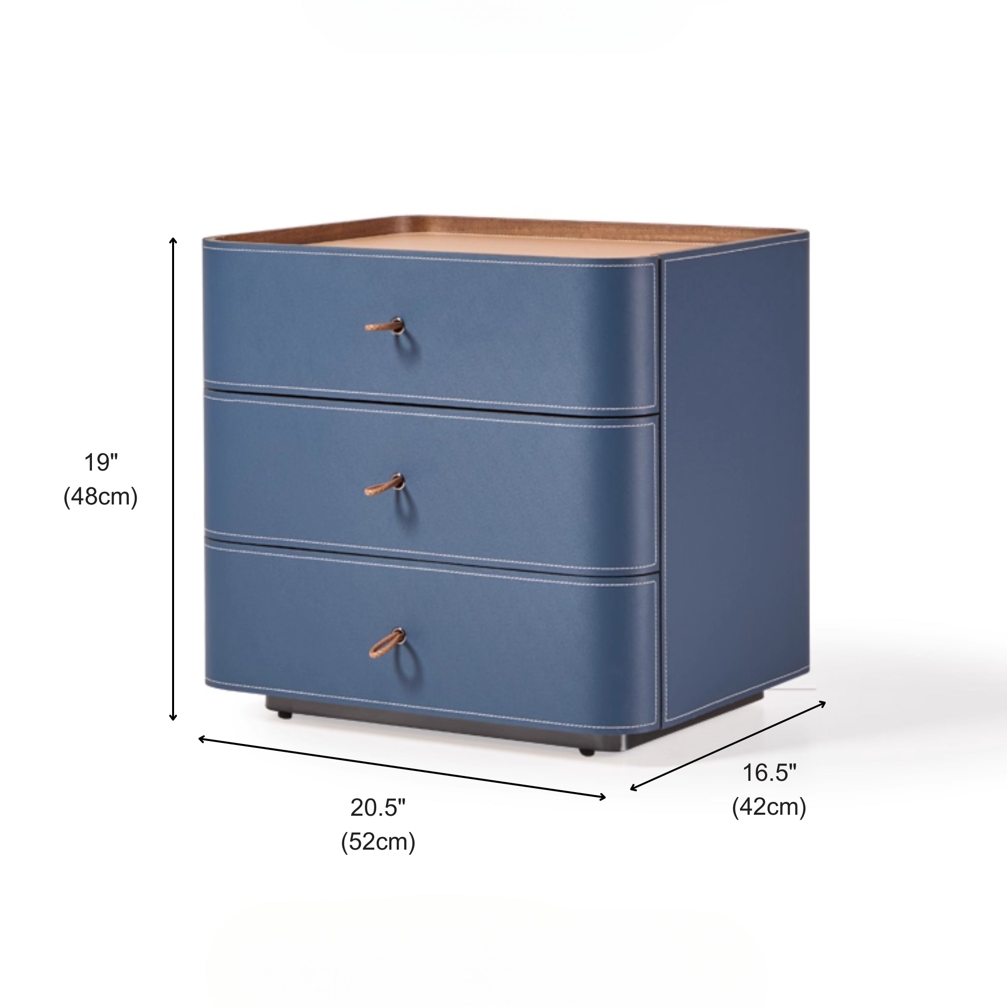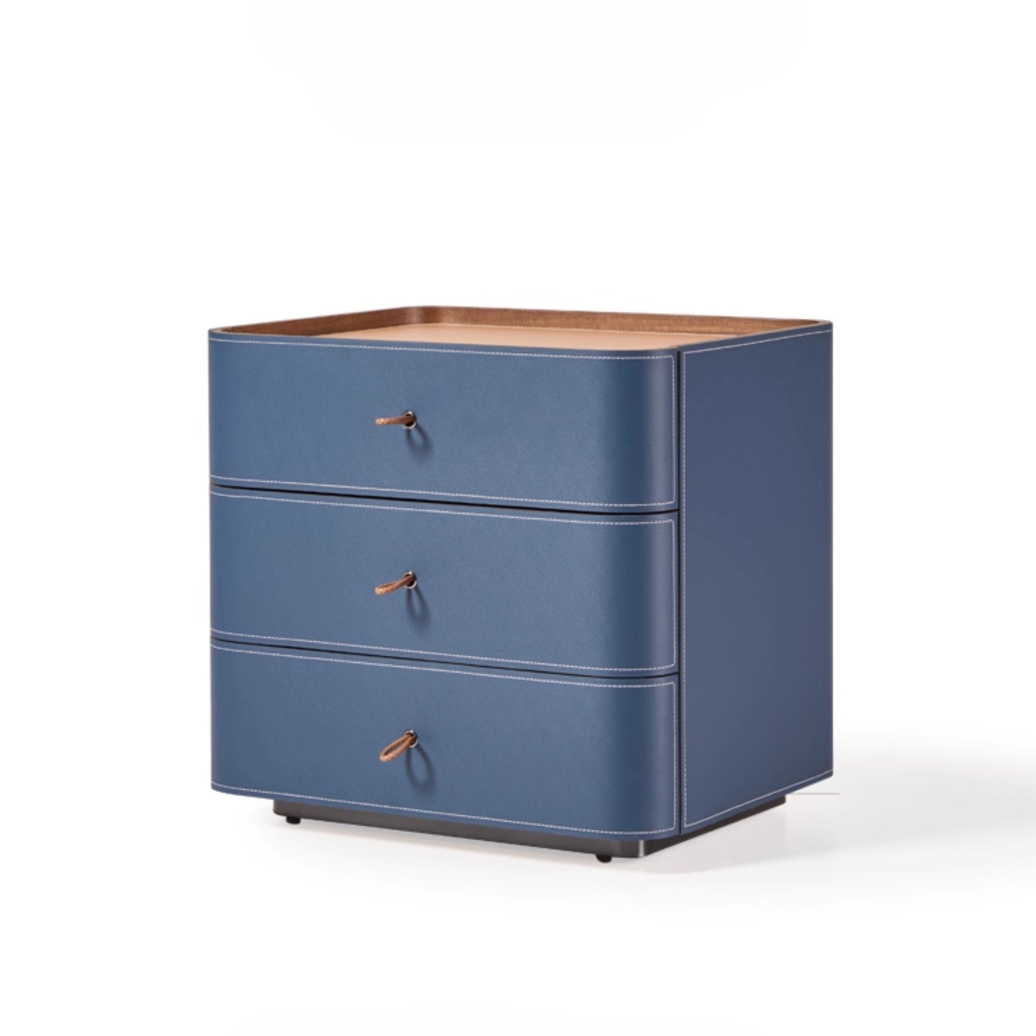 The Portofino Blue Leather Nightstand | 3-Drawer with Leather Top