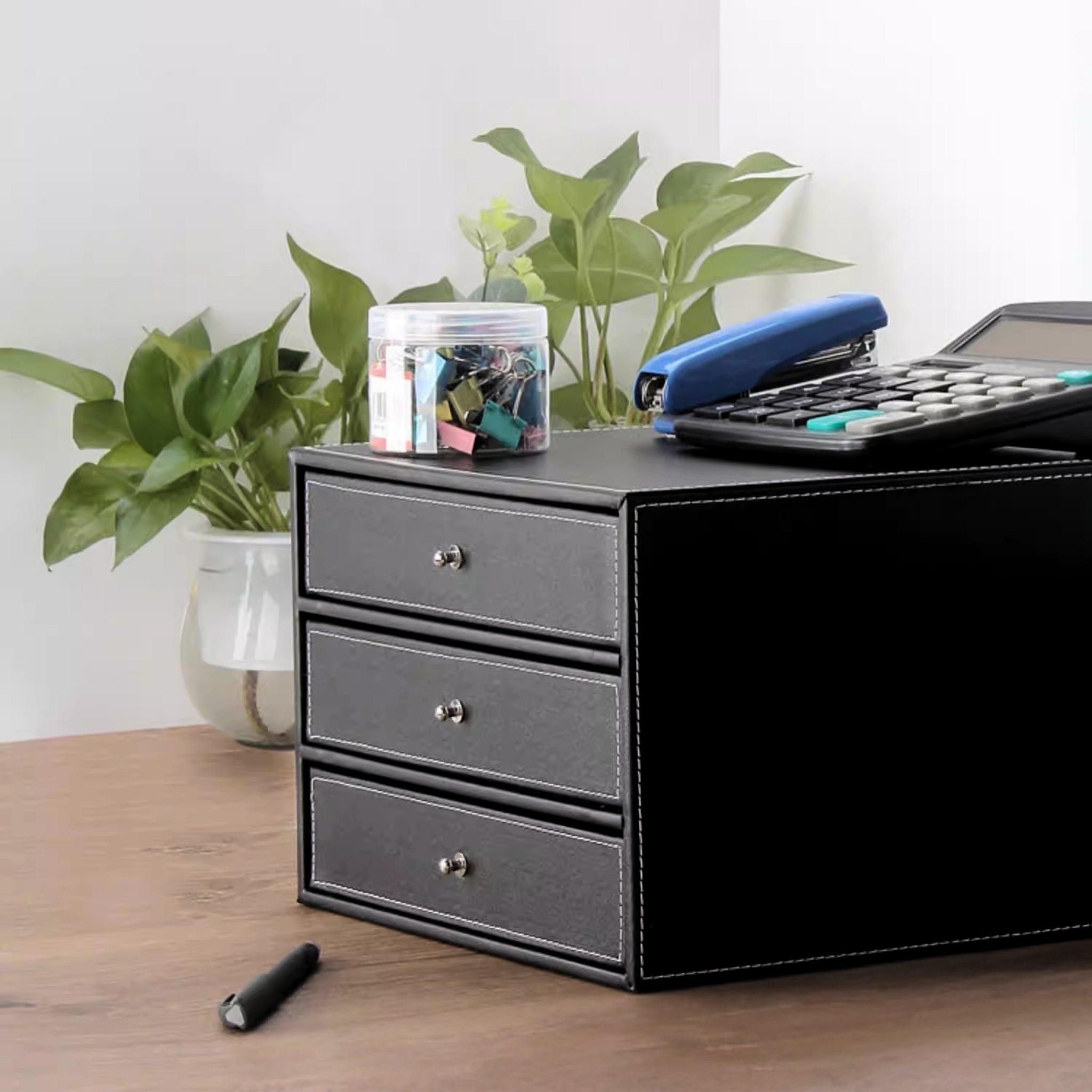 Executive Leather 3‑Drawer Desk Chest | Document & Accessory Organizer | CEO Office & Hotel Desk