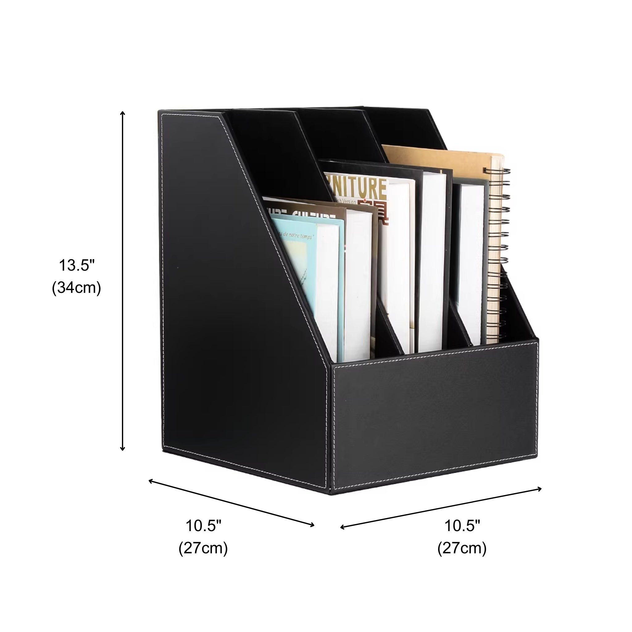 - Three vertical slots for Letter/A4 files, folders, and magazines