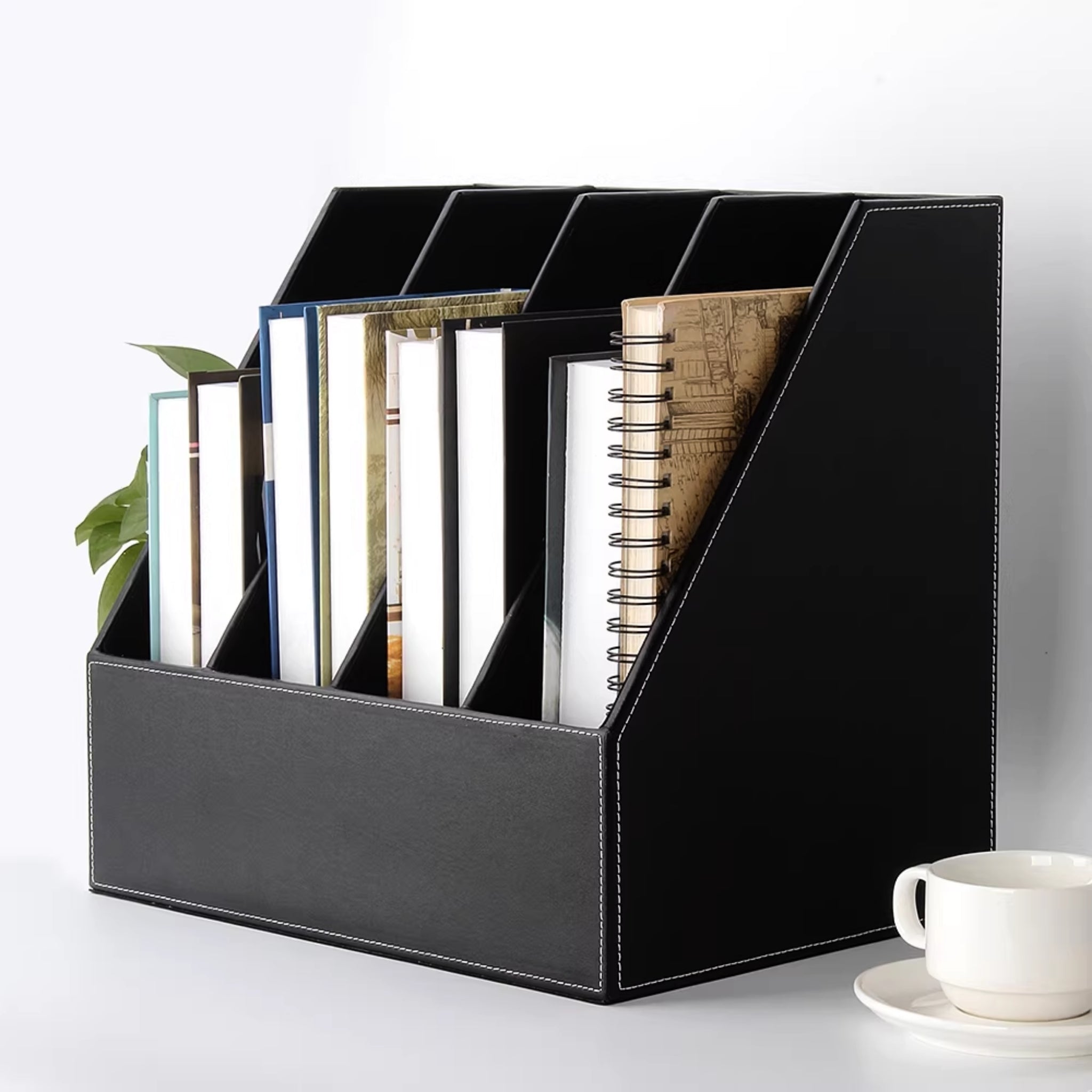 Executive Leather File Organizer | Vertical 4-Section Desk Organizer | Business-Grade Magazine Rack