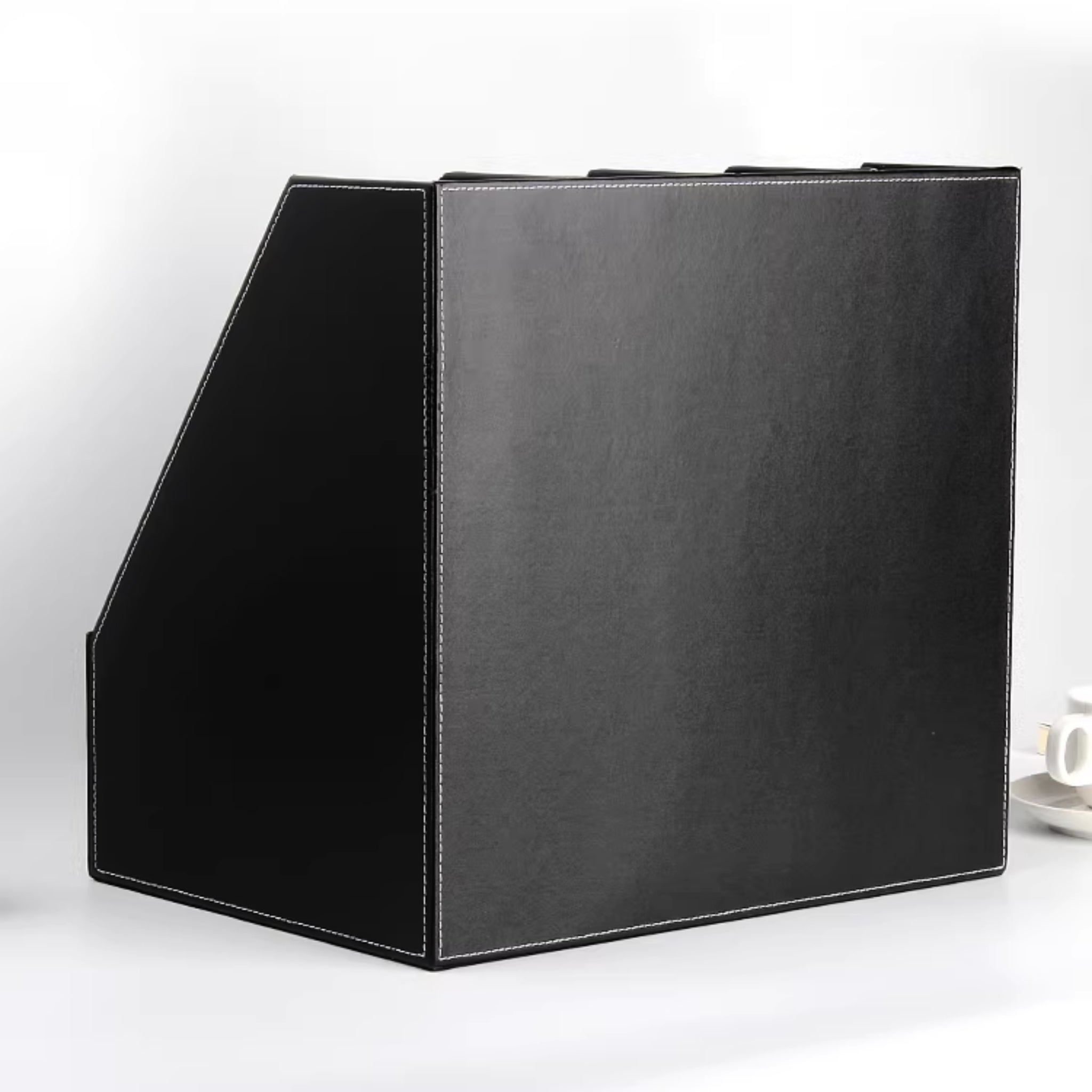 This four-section vertical organizer is wrapped in durable, elegant black leatherette. It provides instant access to essential documents, maintaining a clean and highly professional presentation on any CEO desk or hospitality suite.