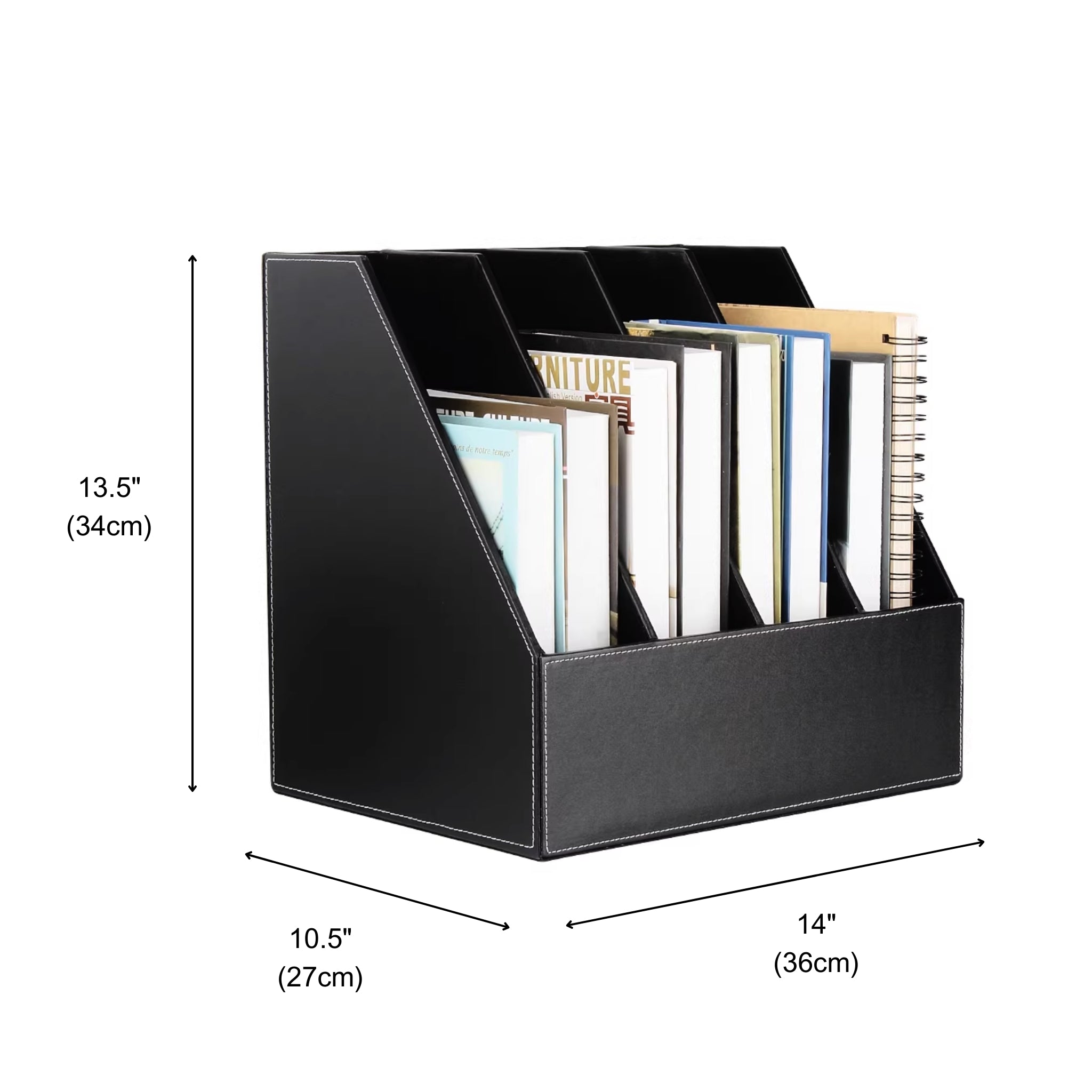 - Four vertical slots for Letter/A4 files, folders, and magazines