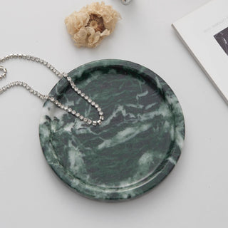 Verde Green Marble Round Tray | Polished Natural Stone Coaster | Art Deco Statement Piece