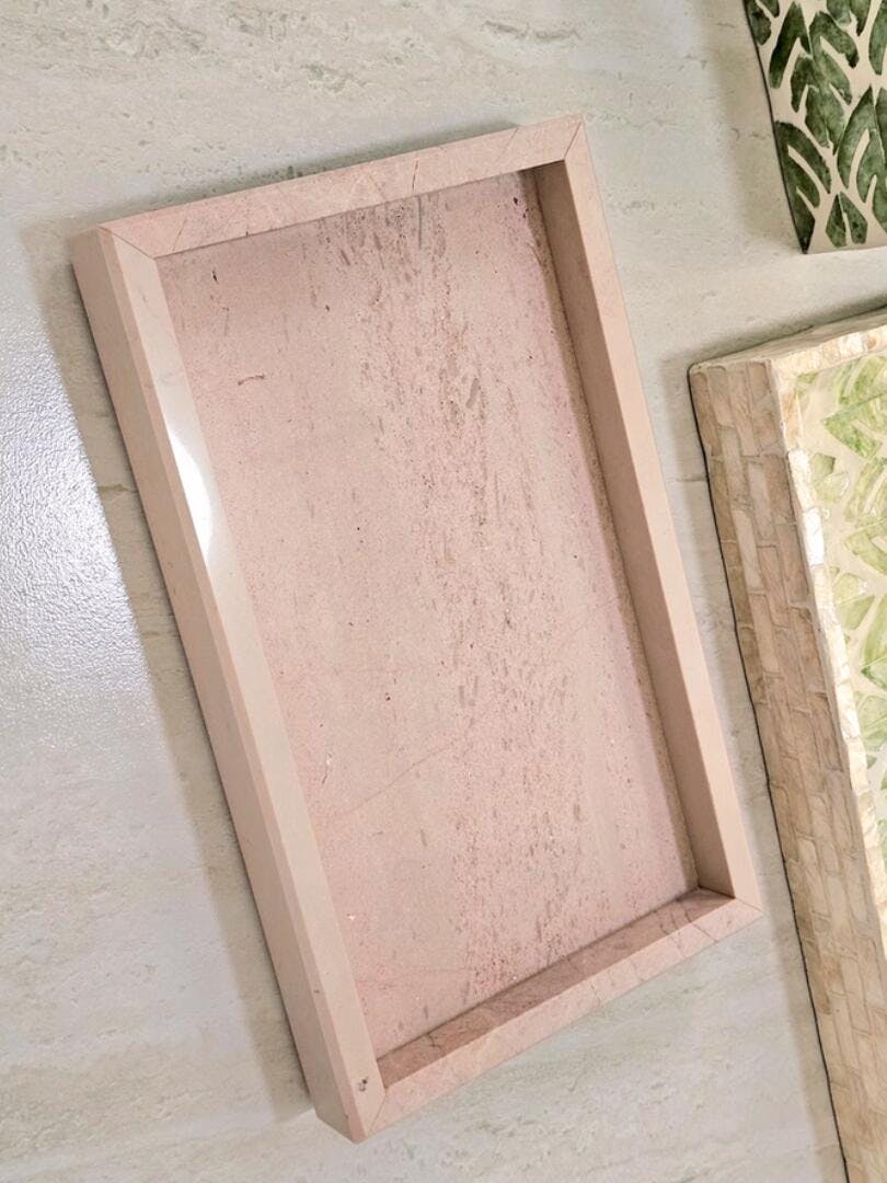 Pink Marble Rectangular Valet Tray | Natural Stone Catchall | Vanity Organizer