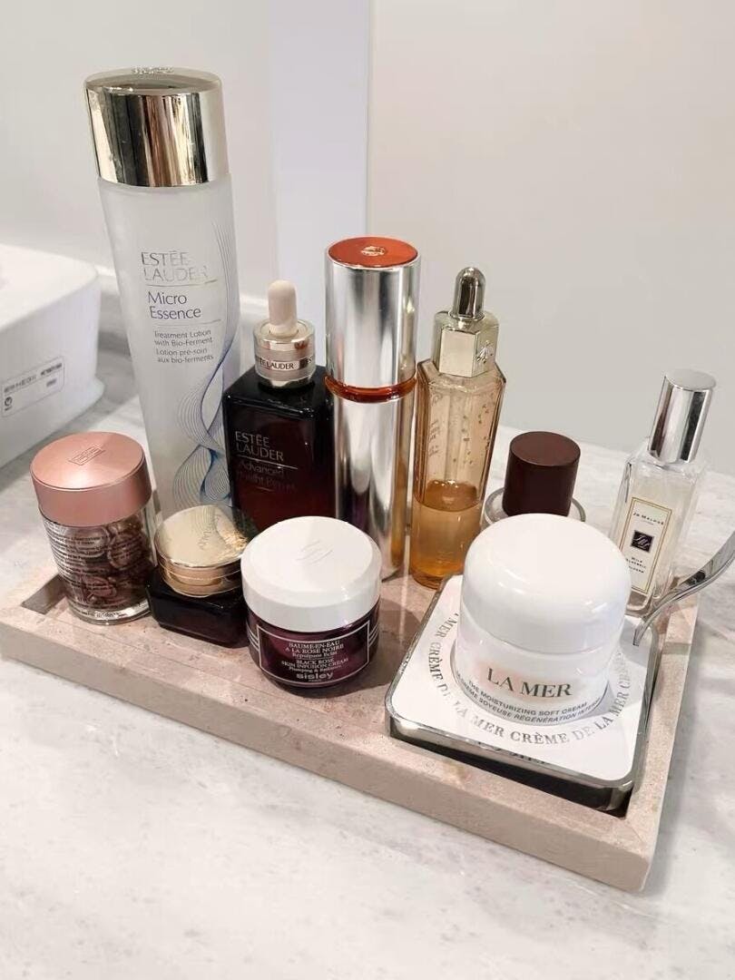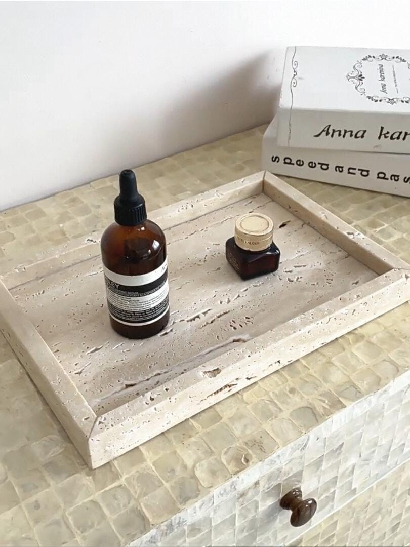 This tray goes with everything. The beige tone is lovely and calming. I use it to organize my skincare and it looks very high-end.