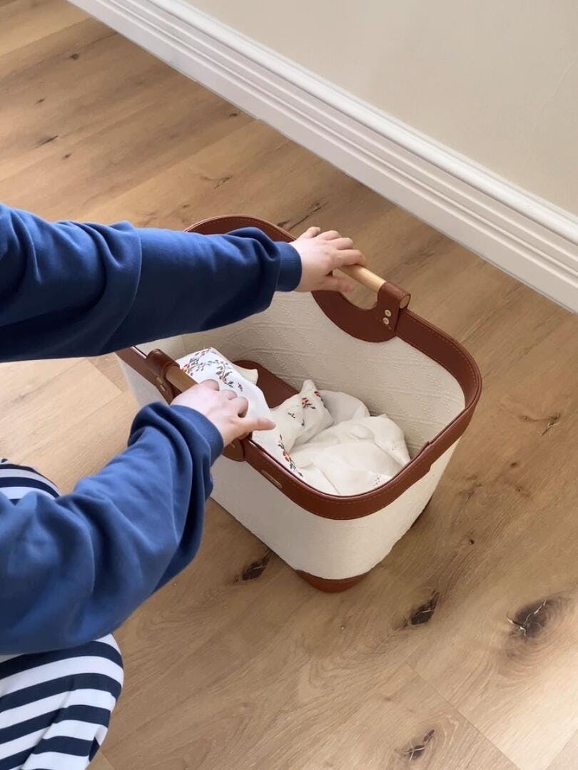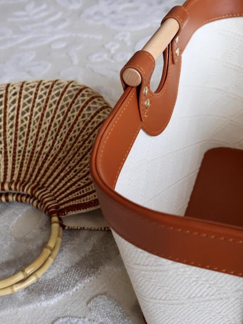 Woven & Leather Oval Storage Basket | Loro Piana Style | Catchall Tray with Wood Handles