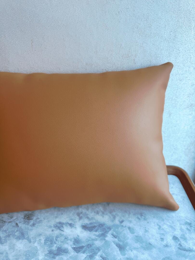 These Heaventopia leather cushions are gorgeous. The leather is buttery smooth and feels sturdy. I have been using them for almost a year now, and they are still perfectly plump with zero creases or sagging.