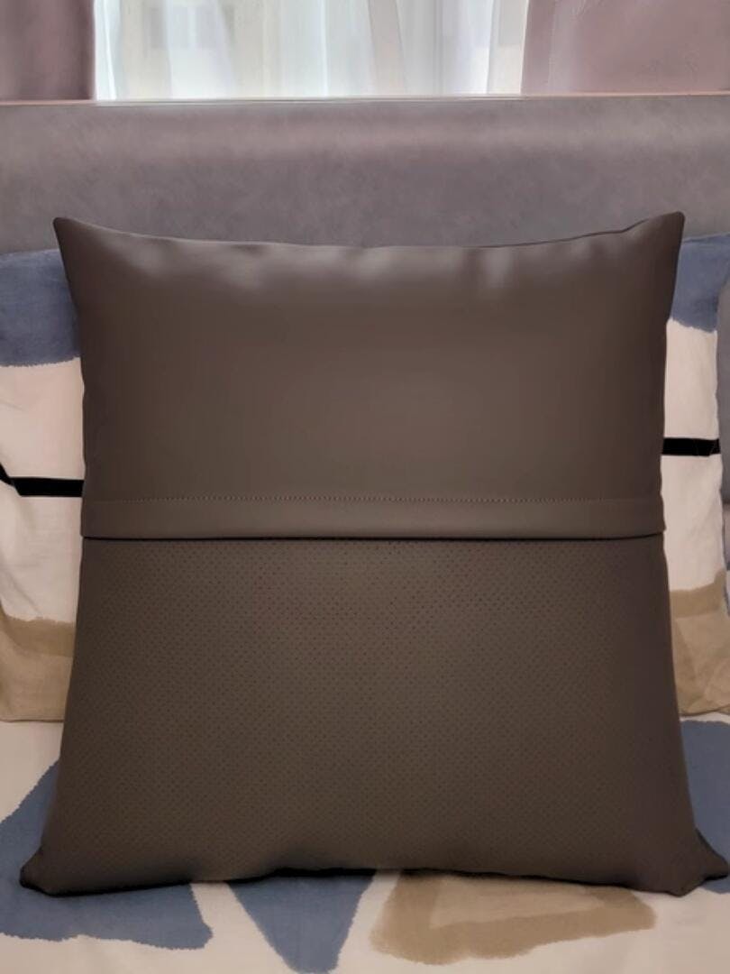 These Heaventopia leather cushions are gorgeous. The leather is buttery smooth and feels sturdy. I have been using them for almost a year now, and they are still perfectly plump with zero creases or sagging.