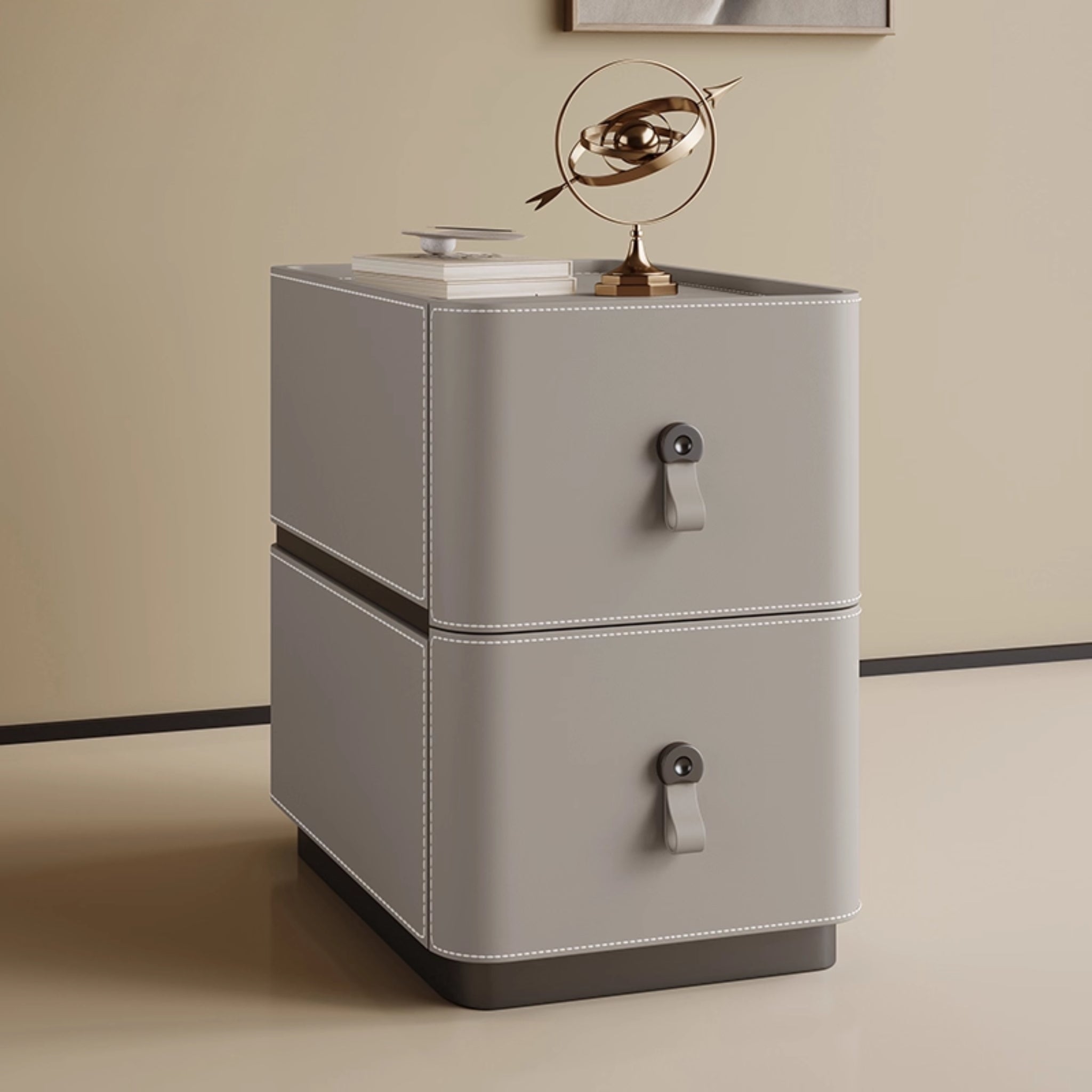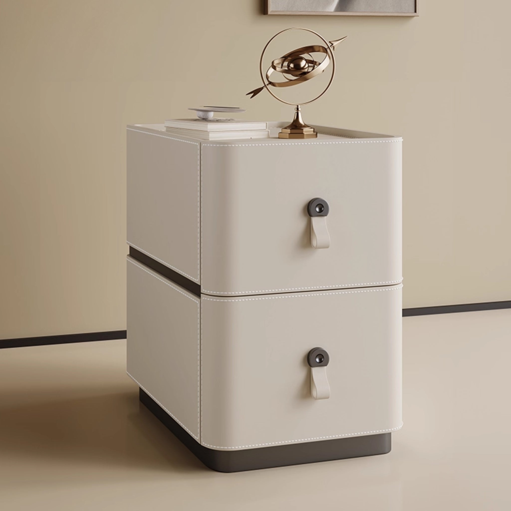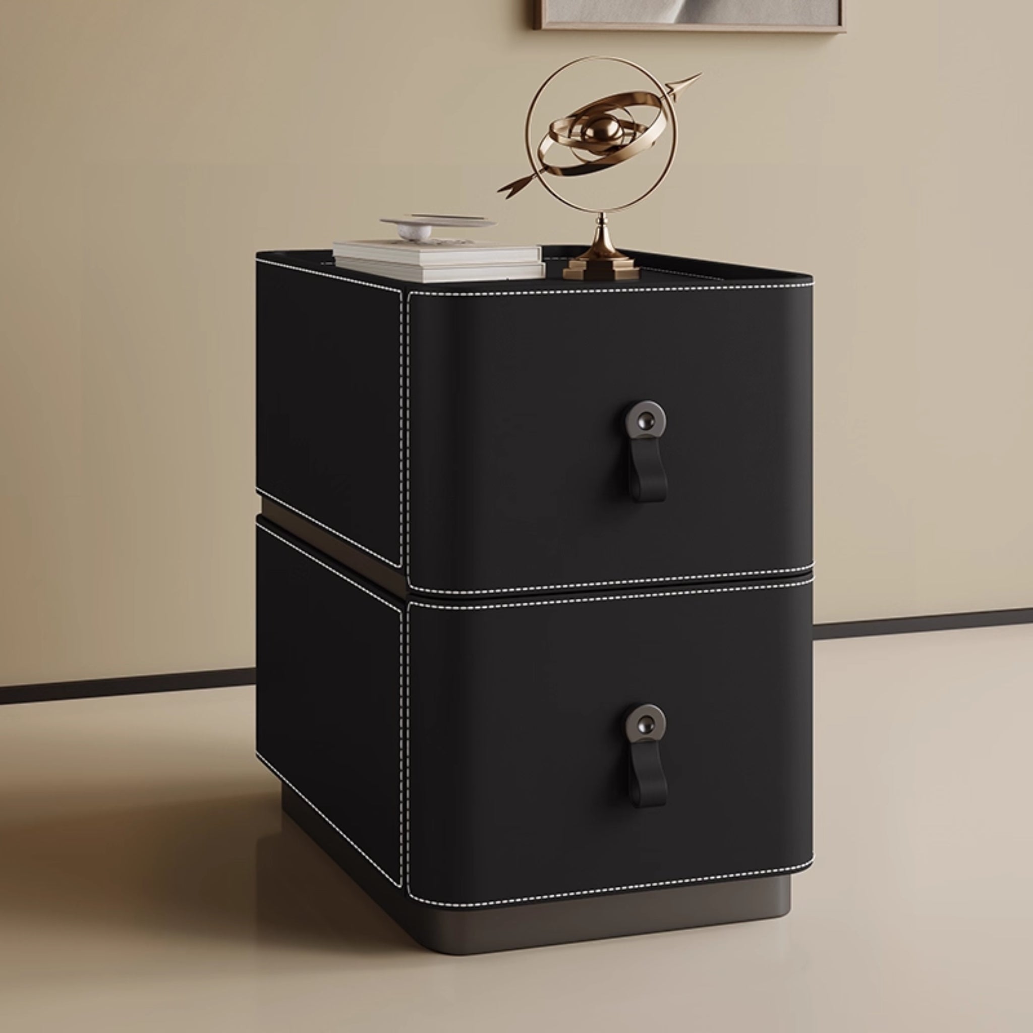 The Milan Leather Slim Nightstand | 2-Drawer with Leather Handles